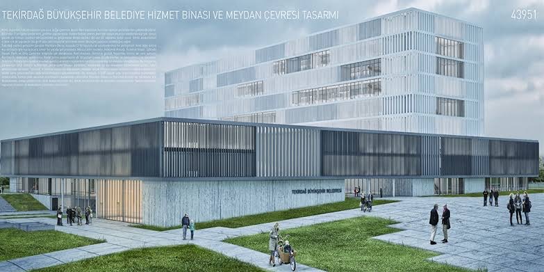 Tekirdağ belediyesinin hizmet binası, meydan altında yer alan otoparkı ve çevre düzenlemesi sağlanmıştır.